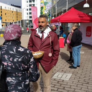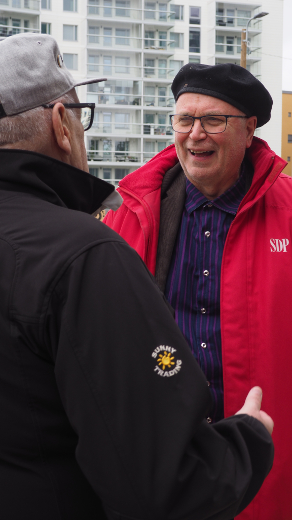 Kansanedustaja Ville Merinen, joka tunnetaan myös nimellä “Terapeutti-Ville”, ja Europarlamentaarikko Eero Heinäluoma vierailivat Myyrmäen Paalutorilla. Merinen on saanut suosiota nuorten keskuudessa somevideoillaan, joissa hän käsittelee mielenterveyteen liittyviä aiheita. Hän on puhunut matalan kynnyksen avun puolesta ja korostanut nuorten hyvinvointia.
